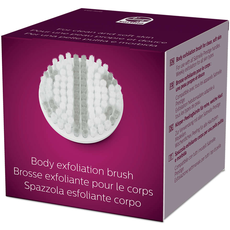 Новая насадка для пилинга тела удаляет омертвевшие клетки кожи. 48 200 тонких гипоаллергенных щетинок мягко и эффективно удаляют омертвевшие клетки и стимулируют регенерацию клеток верхнего слоя кожи. Это устройство обеспечивает наиболее эффективную процедуру по сравнению с пилингом вручную.