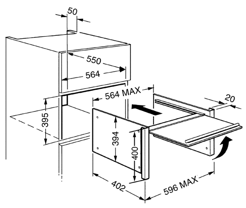 Встраивание в нишу высотой, см