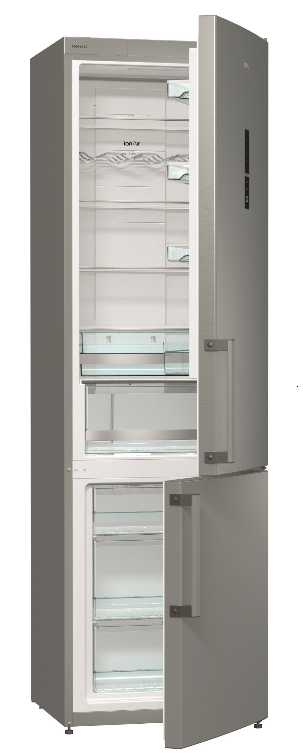 Усовершенствованная технология в холодильниках имитирует естественный процесс ионизации для более длительного сохранения свежести продуктов. Отрицательно заряженные ионы, вырабатываемые прибором, непрерывно освежают воздух, воспроизводя естественный микроклимат, что создает идеальную среду для свежих продуктов. Вентиляционная система MultiFlow 360° равномерно распределяет ионизированный воздух через 14 вентиляционных отверстий для поддержания постоянной температуры на каждой полке.