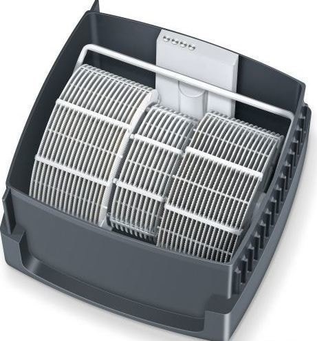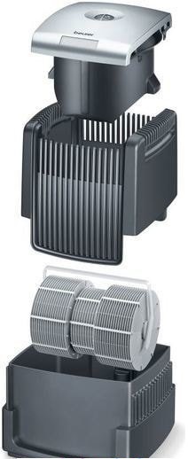 Универсальный прибор увлажняет воздух в помещении методом холодного испарения и дополнительно очищает его за счет мойки воздуха. Подушечки с ионами серебра предотвращают размножение бактерий, грибков и водорослей в воде, исключая необходимость добавления химических жидкостей.