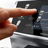 Панель управления имеет сенсорные переключатели и удобный TFT-дисплей, на котором в текстовом виде выводится вся необходимая информация. Также предусмотрена индикация для переполненного поддона с водой. Съемный контейнер под отходы достаточно вместителен, в нем может храниться жмых после 14 порций.