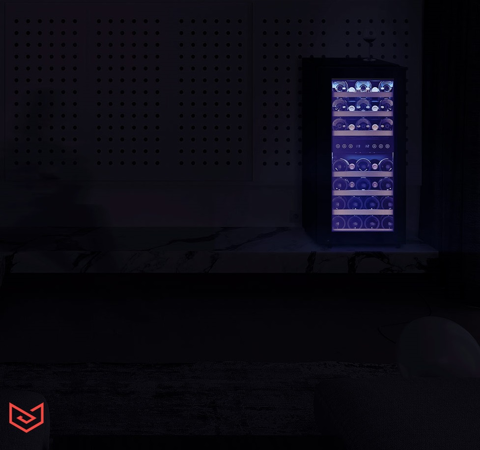 Корпус MV33-KBF2 выполнен из стали окрашенной в чёрный цвет, стекло с шелкографией полностью покрывает дверь. Современная технология освещения позволит Вам в любое время эффектно продемонстрировать Вашу винную коллекцию гостям. Каждая деталь модели гармонично дополняет друг друга, делая винный шкаф универсальным под любые стили интерьера.