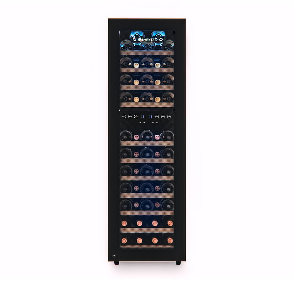 Равномерное охлаждение содержимого шкафа достигается благодаря качественной циркуляции воздуха. С помощью современной сенсорной панели управления Вы сможете быстро и легко управлять всеми функциями шкафа. Практически бесшумная работа винного шкафа Meyvel MV53-KBF2 достигается благодаря установленному современному и энергоэффективному компрессору. Модель оснащена многоступенчатой системой гашения вибраций, обеспечивая полный покой Вашей винной коллекции.