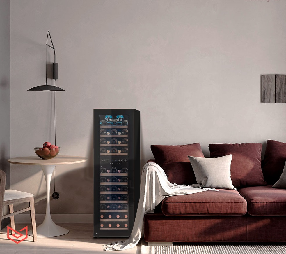 Благодаря продуманному внутреннему исполнению и съемным полкам Вы сможете размещать бутылки любого объема. Внутреннее пространство рассчитано на хранение до 53 бутылок типа Бордо (0,75 л). При желании можно извлечь несколько полок и разместить большее количество бутылок. Габариты модели позволяют разместить ее максимально функционально в любой зоне: кухне, столовой, гостиной.