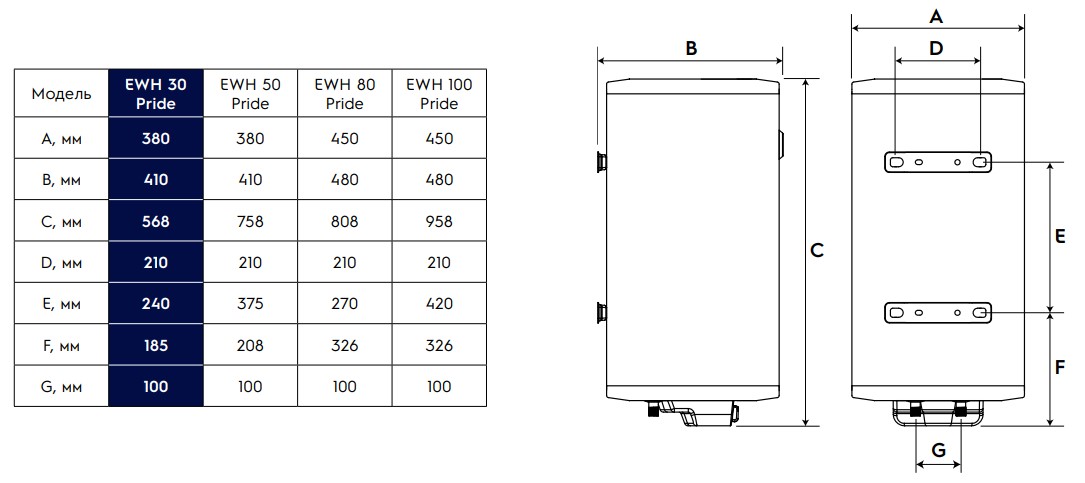 | Тип водонагревателя | накопительный |