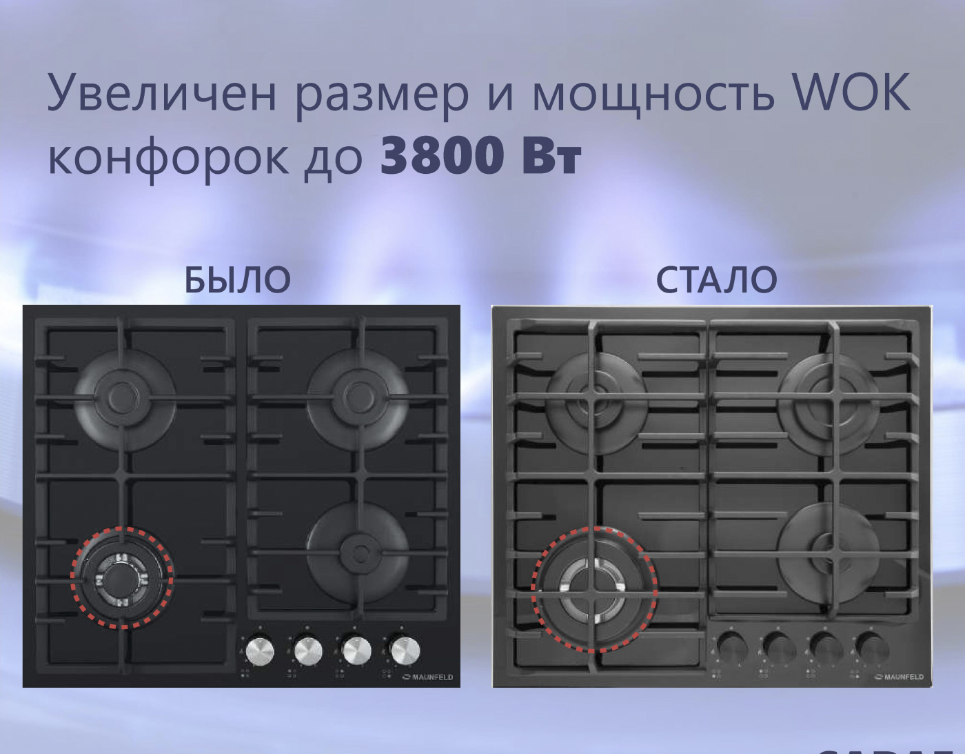 Увеличенный размер и мощность WOK-конфорок